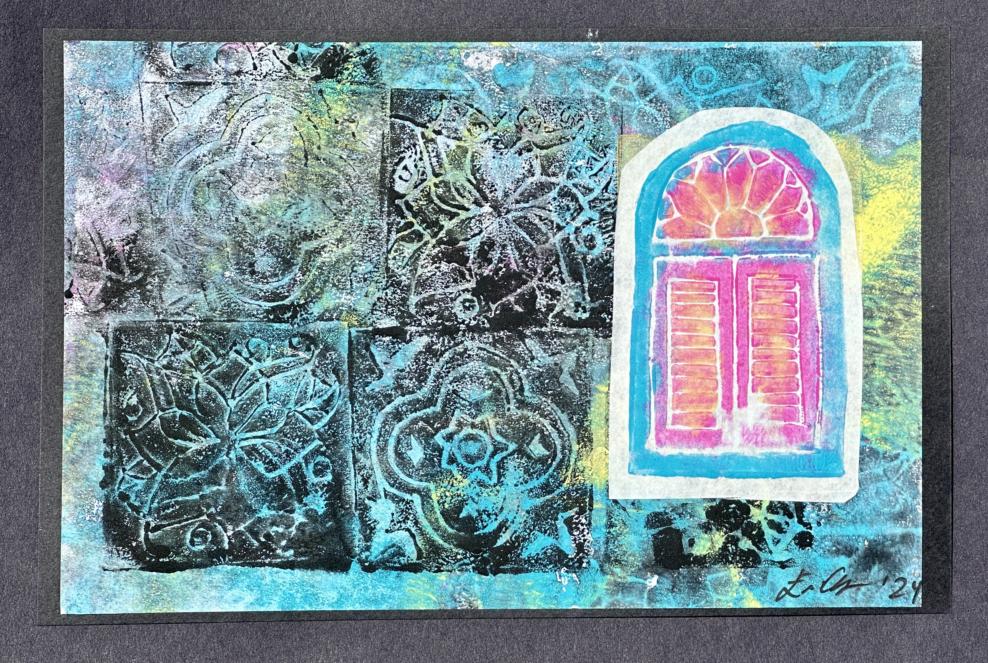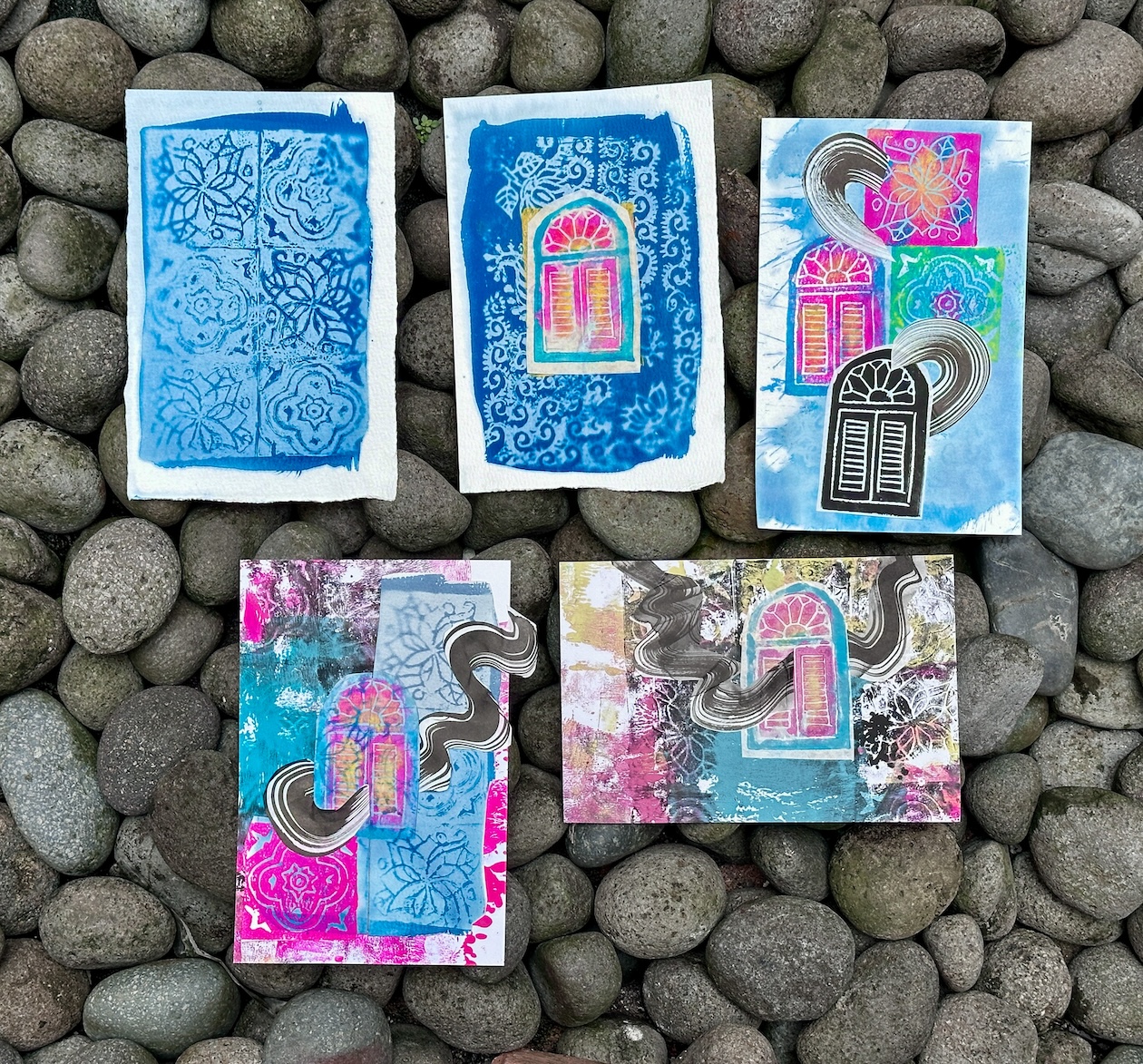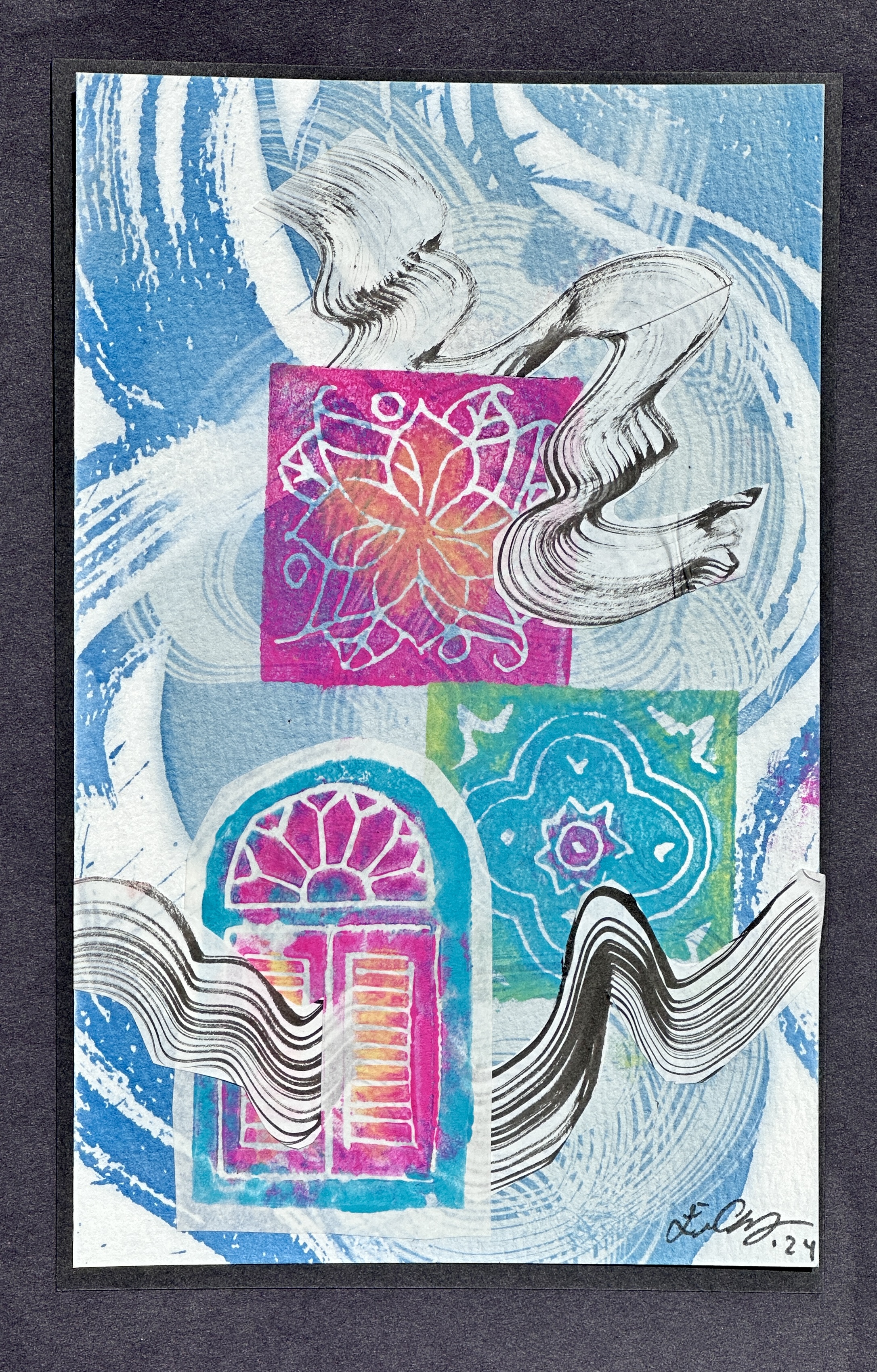 Drawing inspiration from her multicultural experiences, Erin layers patterns from Singapore and New Orleans represents, represetning her family. “Mixing materials like cyanotype, ink, and printing is a joyful passion of exploration for me.”