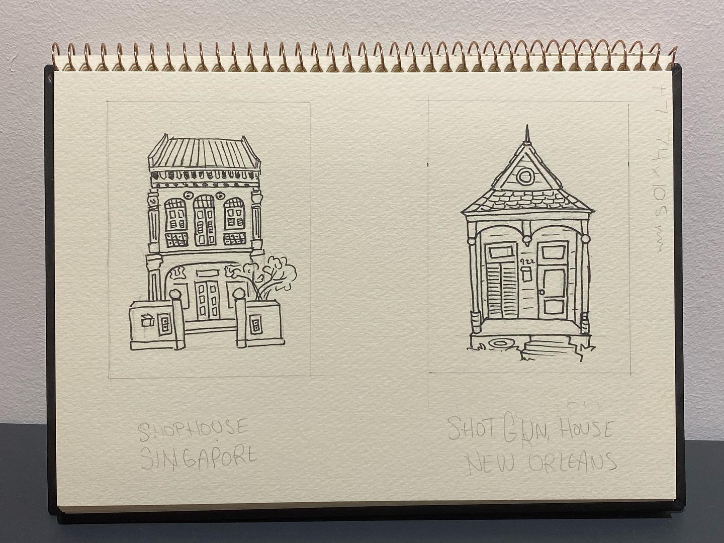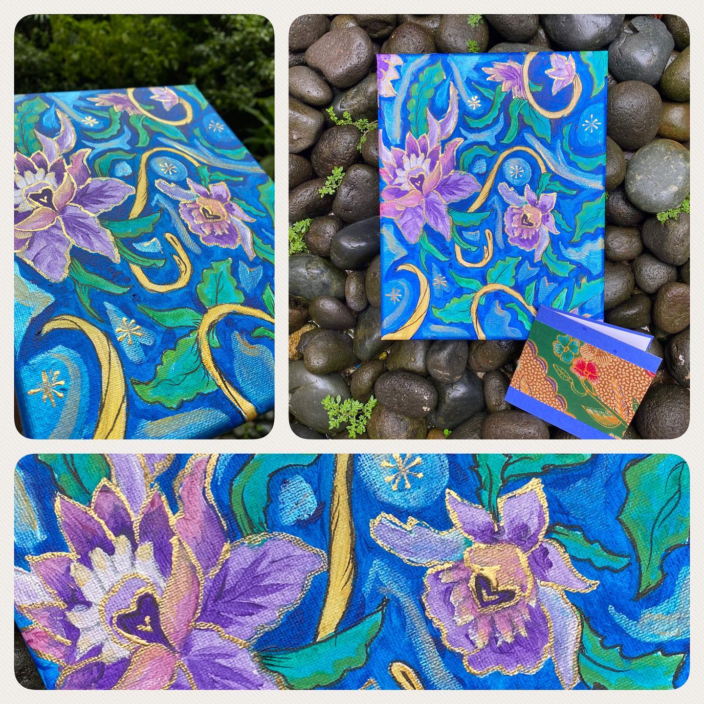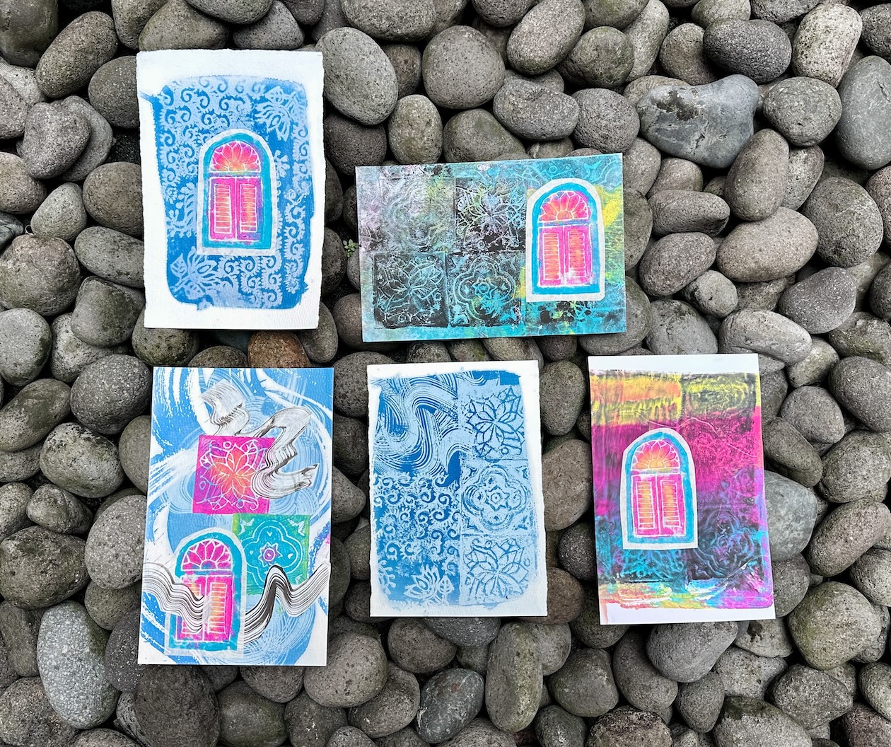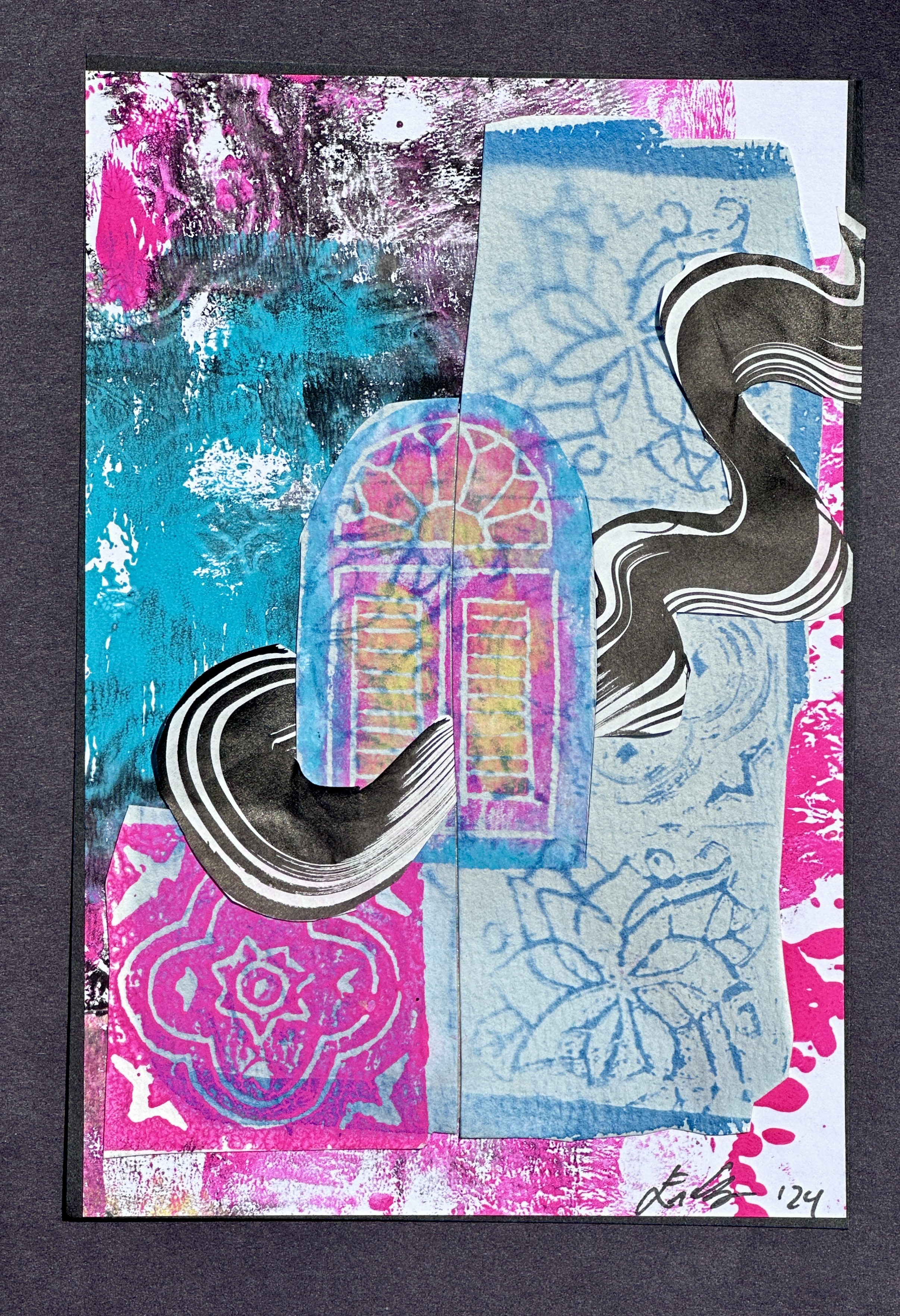 Drawing inspiration from her multicultural experiences, Erin layers patterns from Singapore and New Orleans represents, represetning her family. “Mixing materials like cyanotype, ink, and printing is a joyful passion of exploration for me.”