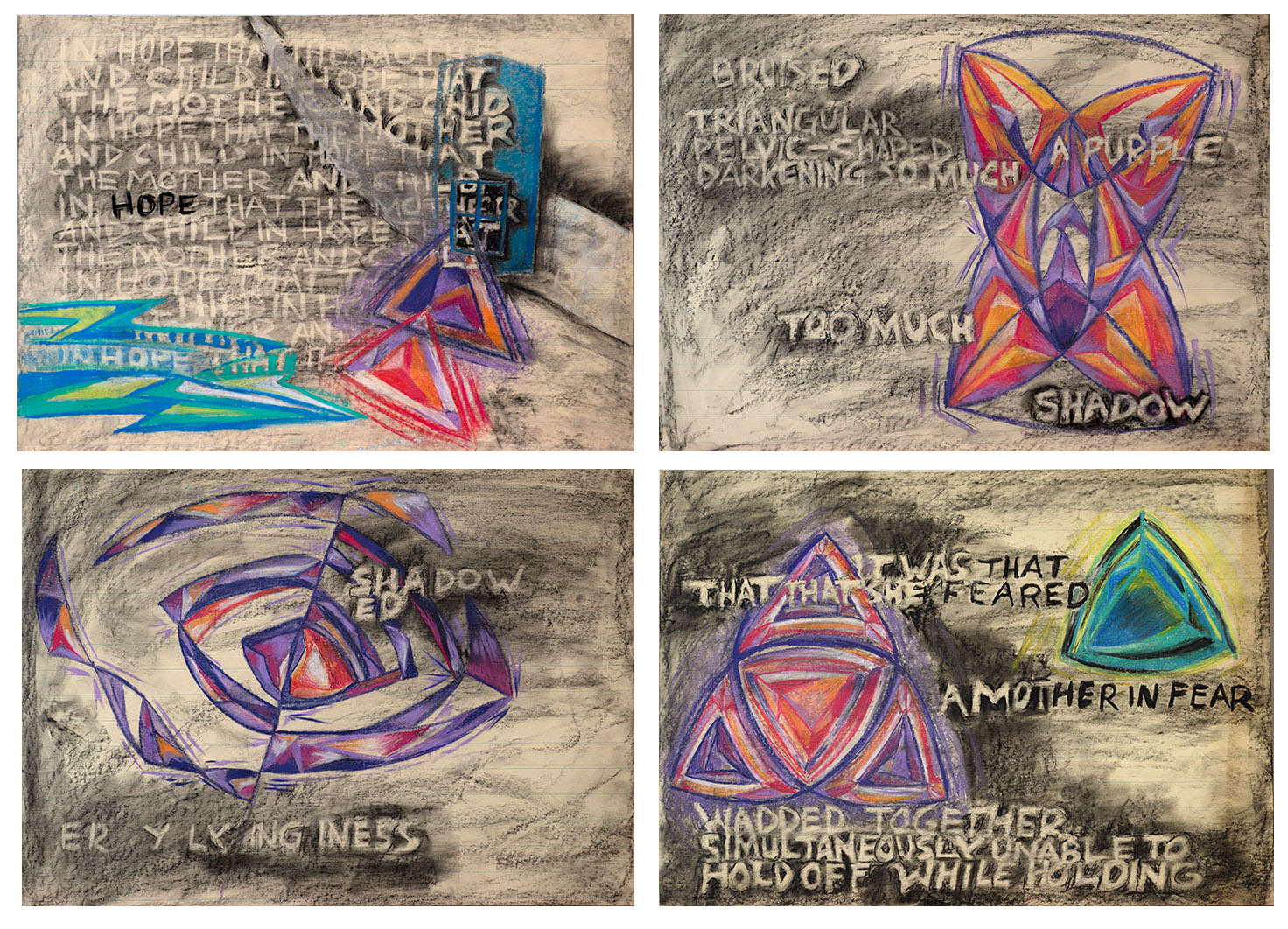 Caskey’s series draws inspiration from Claudia Rankine’s PLOT, Virginia Woolf’s To the Lighthouse, and the artistic ethos of the Bloomsbury Group. Central to the work are the imagery and themes from Rankine’s poem “Eight Sketches: After Lily Brasco’s Purple Triangle.”